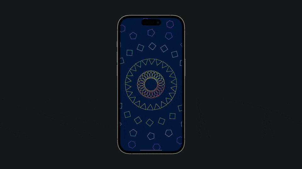 This approach uses trigonometry to place shapes along curved, circular paths instead of using traditional SwiftUI layout containers like HStack or VStack that arrange items in straight lines, showcasing how creative coding can break free from conventional rectangular layouts and create organic, radial arrangements that open up entirely new possibilities for designing visual experiences.
