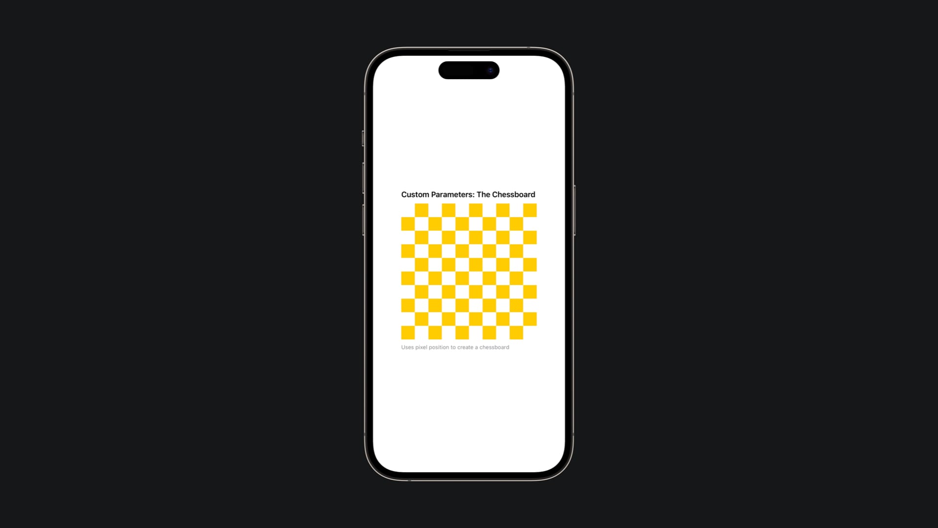 In this article, we’ll explore how to pass custom parameters from SwiftUI to Metal, to build procedural patterns like a configurable chessboard, to drive shaders using time-based animation and to use mathematical functions to create smooth, continuous motion.
