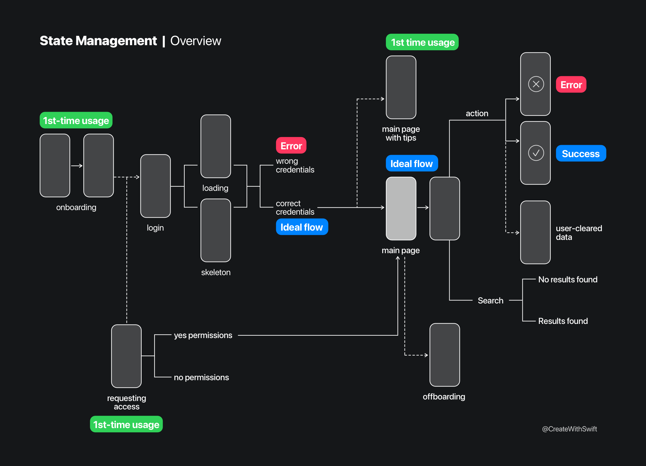 An application carries users through different states during their journey –from happy steps to error scenarios. Each transition shapes the overall user experience, much like chapters in a story. During onboarding, users expect a welcoming screen and, maybe, a quick guide. After many times using the app, seeing the same beginner tips can become tiresome. A well-designed app anticipates and adjusts user needs in all states, enhancing an app's overall effectiveness and user engagement.