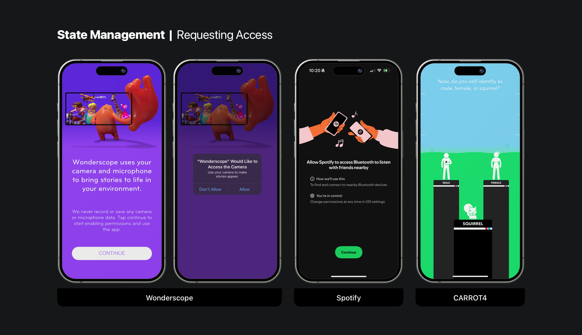 The requesting access state is when an app asks permission from the user, such as location, camera access, or notifications. This moment is key, as impacts the user’s trust and willingness to grant access. Clear, concise messaging is essential to explain why the permission is needed and how it enhances the user experience. For instance, instead of a generic request, a photo app might say, “We need access to your camera to let you capture and edit memories instantly.” Providing this context fosters transparency and helps users feel more comfortable granting permissions.