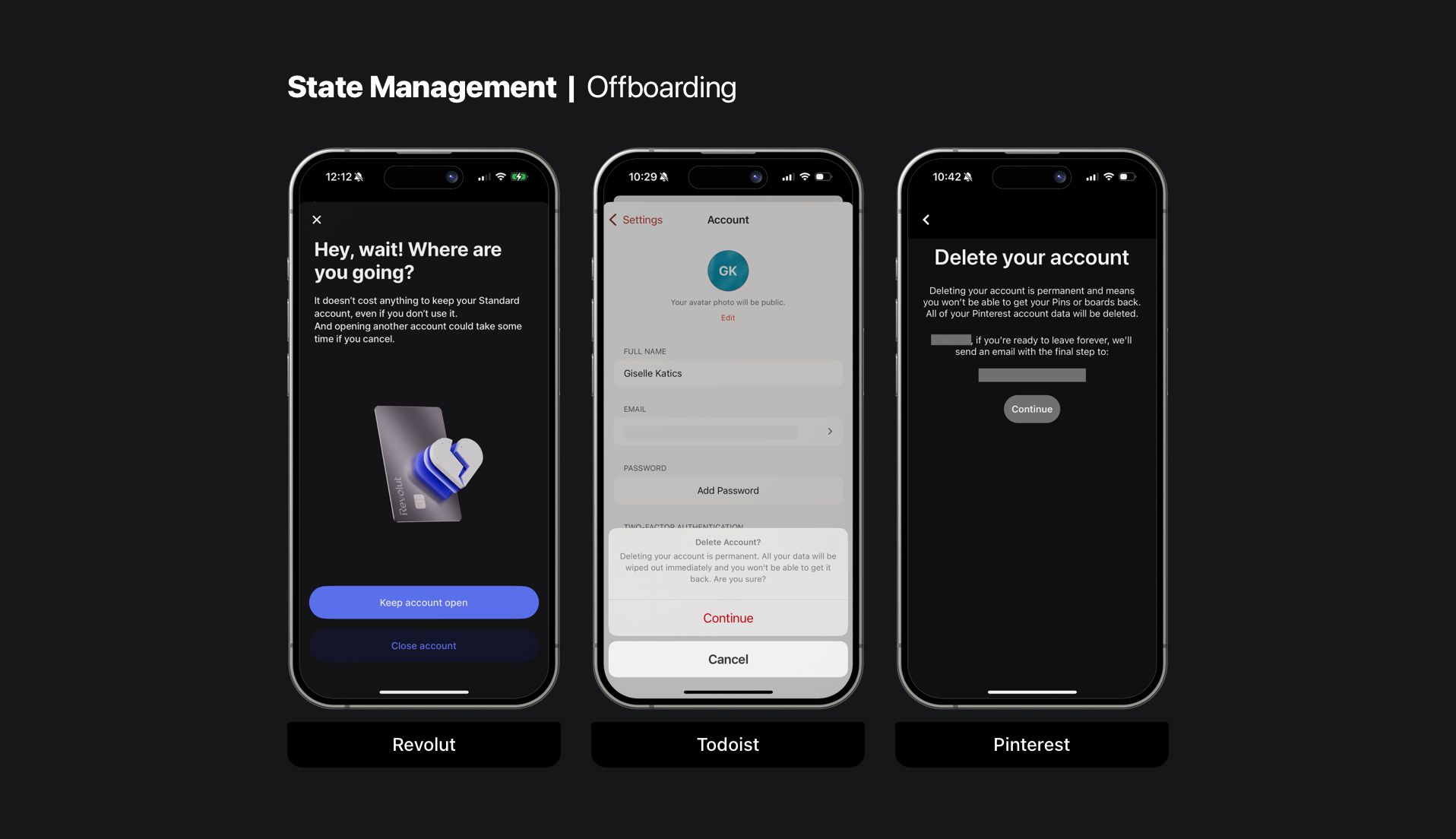 The offboarding state is the final stage of a user's journey with an app. While often overlooked, a thoughtful offboarding experience is essential for leaving a lasting positive impression. It is more than just account deletion; it’s providing users with clarity, respect, and control over their data and experience. By handling digital endings gracefully, apps can foster trust, encourage future re-engagement, and demonstrate a user-centric approach even at the point of departure.
