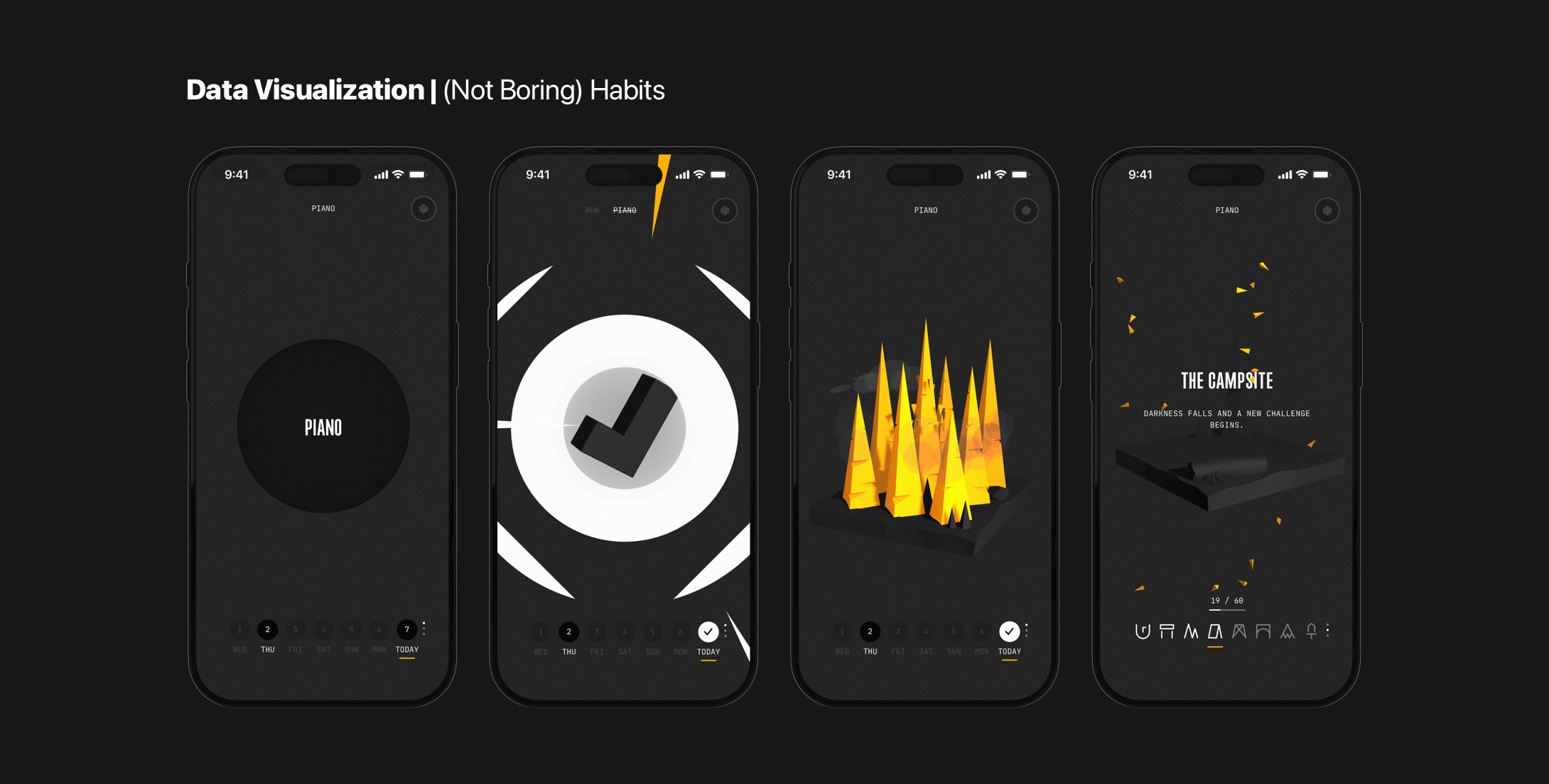 Connecting data types to user goals brings clarity and eases design direction. Comparing revenue across months, for example, starts with a bar chart. This helps create the initial shape the data visualization should follow, even if the final design won’t be a bar chart. Tracking daily mood or habits, sparklines, or radial progress rings, makes feedback intuitive and personal. Whatever the form, the visualization should serve the user’s purpose, not the data itself.