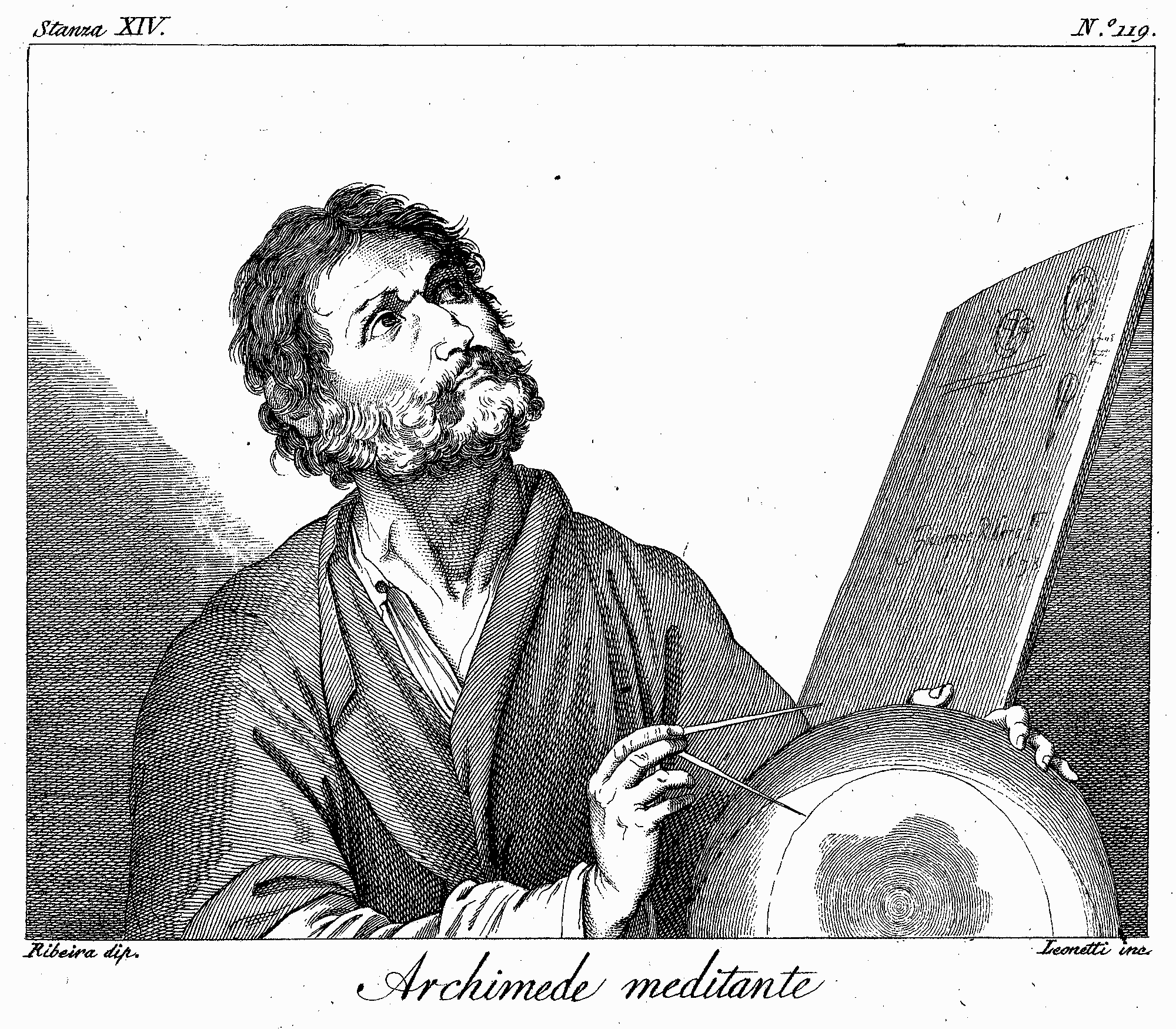 Surely he came to limelight in collective imaginary, embodying well the figure of a bizarre genius, in the shoes of Disney’s Gyro Gearloose (1) but “What does the modern cultured man know about him? [...] He just remembers that he did strange things: he ran naked along the streets shouting Eureka! He dipped crowns into the water, he drew geometrical figures while he was being killed and so on. The children anecdotes [...] equalize Archimedes more to the legendary and the mythological characters than to other thinkers. The result is that we remember him, but we do as a legendary character, completely out of history” (2) As for as the historical personage, only his death date is sure: 212 BC, because he died in the fault of Syracuse, in consequence of the roman siege, an epochal event related in the Annales.