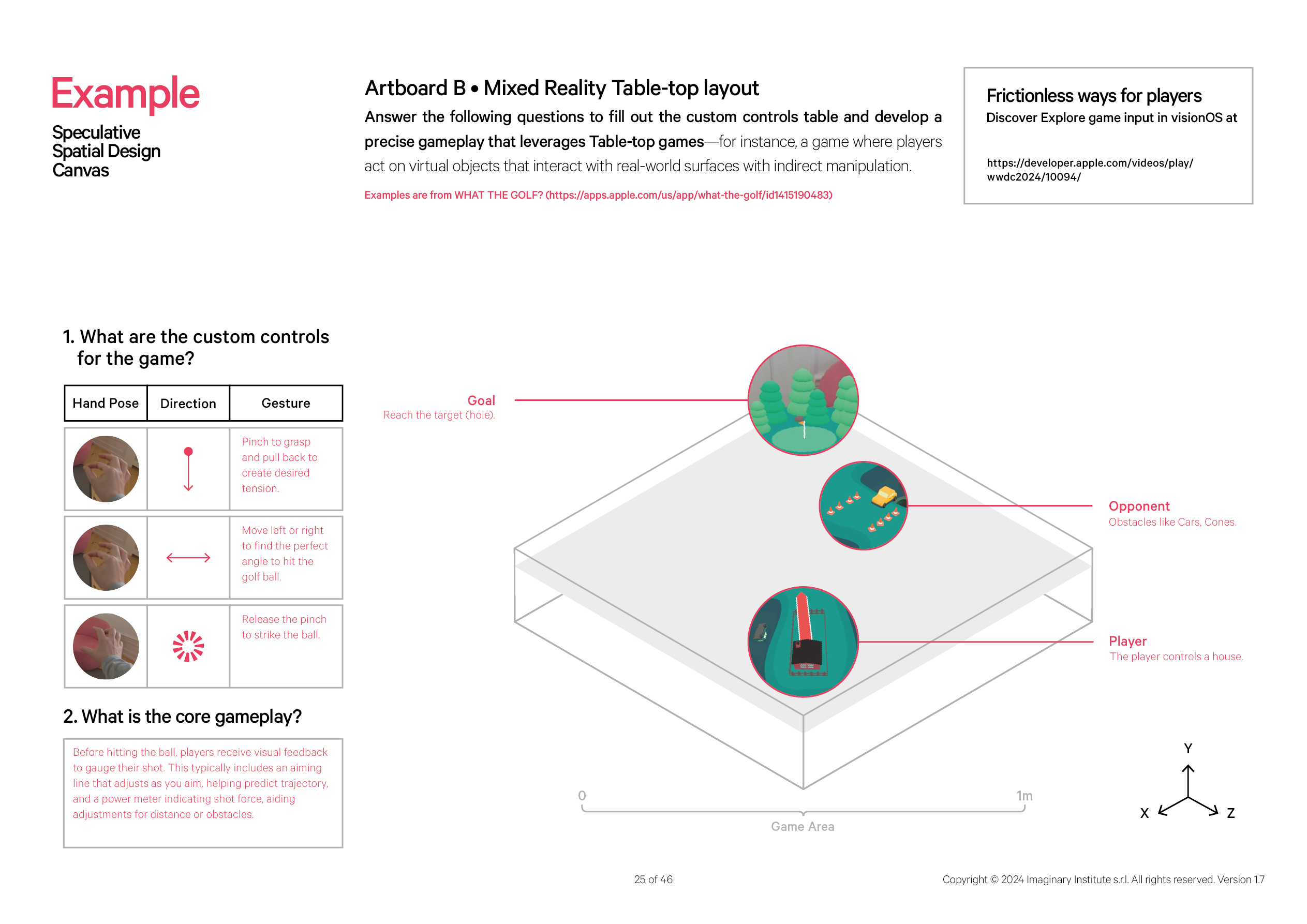 In an attempt to answer these questions and provide the tools to support the design process of games for Spatial Computing, we have created canvas add-ons to the Speculative Spatial Design Canvas, which introduce new sections dedicated exclusively to gaming.