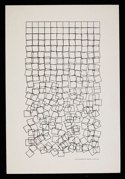 Before digital art existed, painters like Cy Twombly and François Morellet explored systematic approaches to composition with elements of chance. Kelly's "Colors for a Large Wall" (1951) arranged colored squares in a seemingly random yet carefully orchestrated grid, while Morellet's "Random Distribution of 40,000 Squares" (1963) used a random number table to determine the placement of elements.