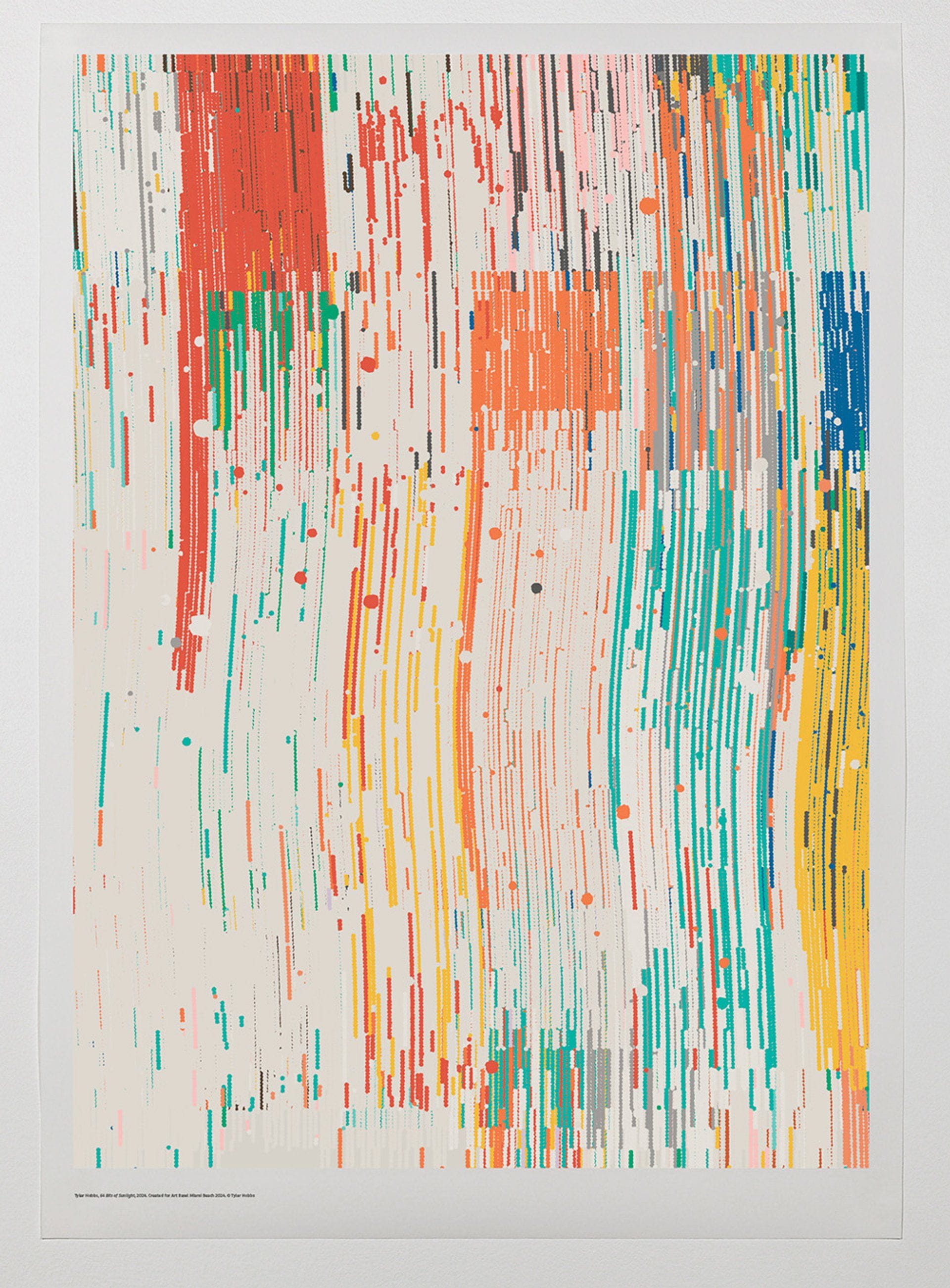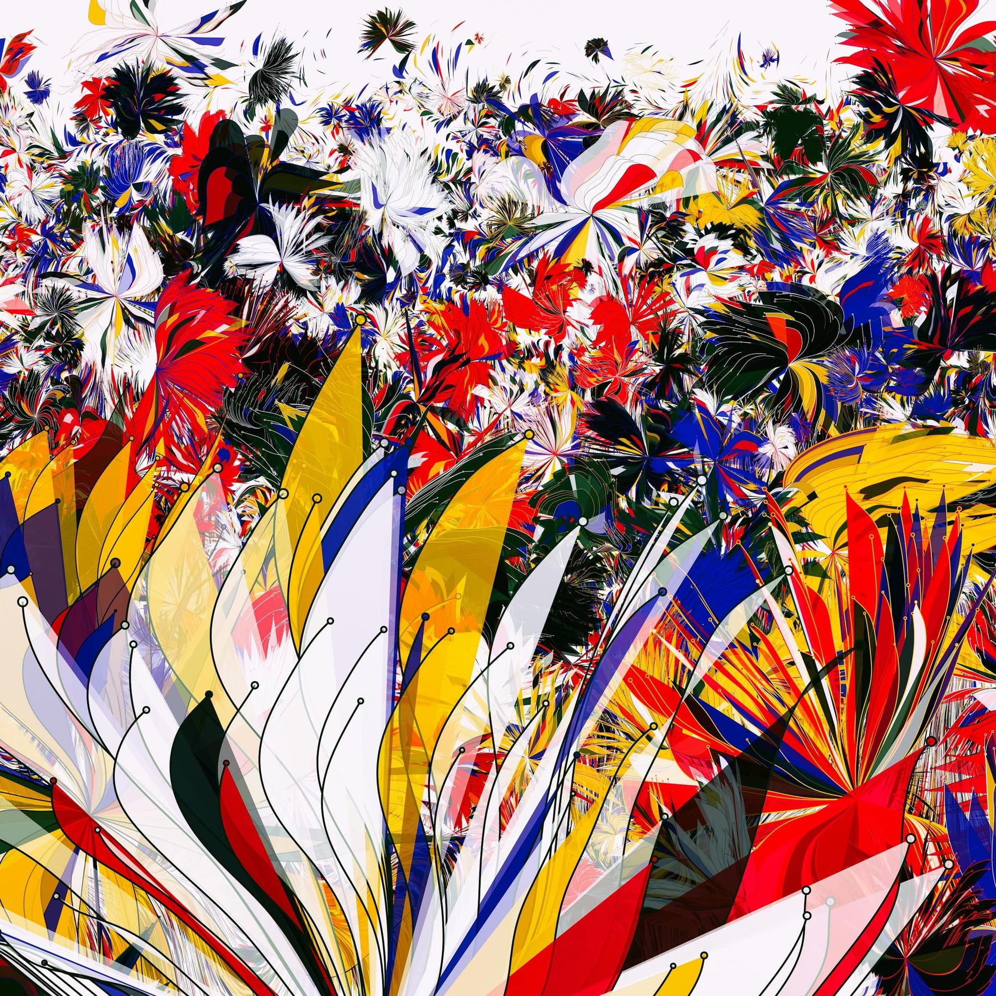 In most cases, it is a layering of techniques, approaches, and procedures that lays the foundation for computational aesthetics. This strategic superimposition constitutes one of the cores of generative art practice - not simply applying single algorithms in isolation, but orchestrating multiple procedural systems that interact in complex ways. Through the deliberate layering of these techniques - strategically combining different algorithmic processes, such as geometric transformations, color manipulations, and controlled randomness - artists generate complex and unexpected results that exceed the sum of their individual components.