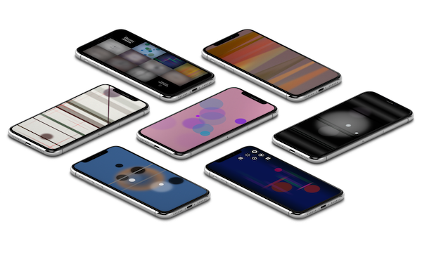 Color alteration enabled by Interaction: when touching a point on the screen, the whole shapes’ set adapts its color based on the complementary color detected in the tapped area, starting applying the change from the very first shape of the set.