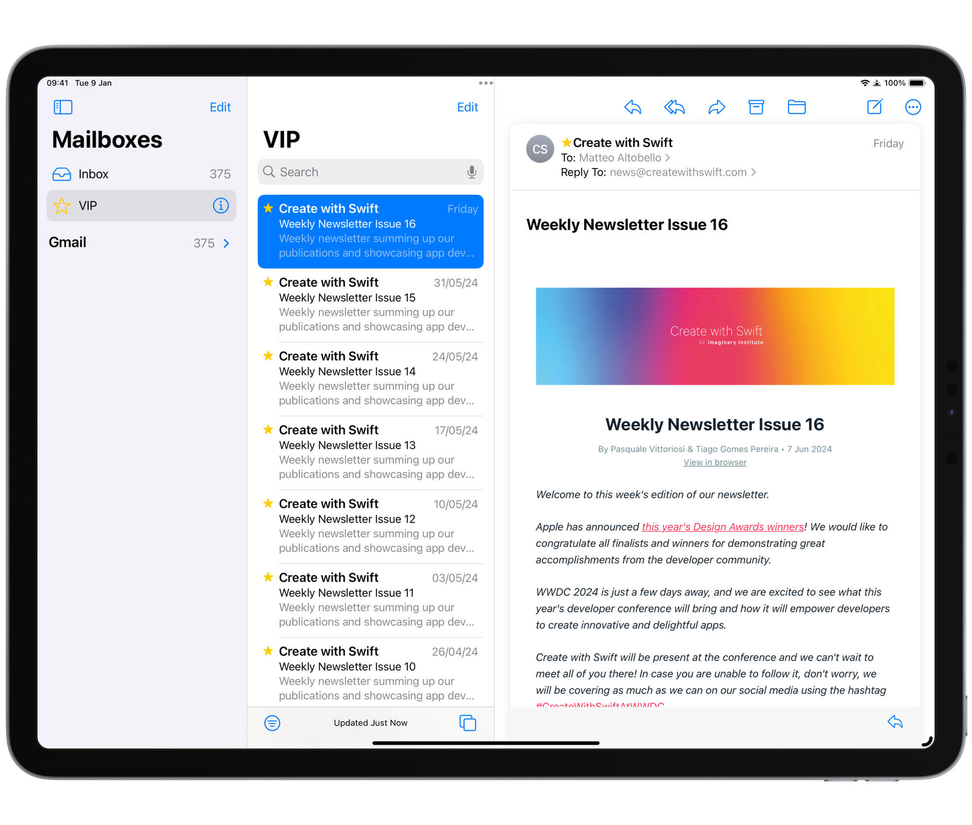 We can implement this type of navigation in our apps by using the NavigationSplitView container, that works exactly as the NavigationStack that we place at the root of our app to create navigation inside our app, to create multi-column interfaces.