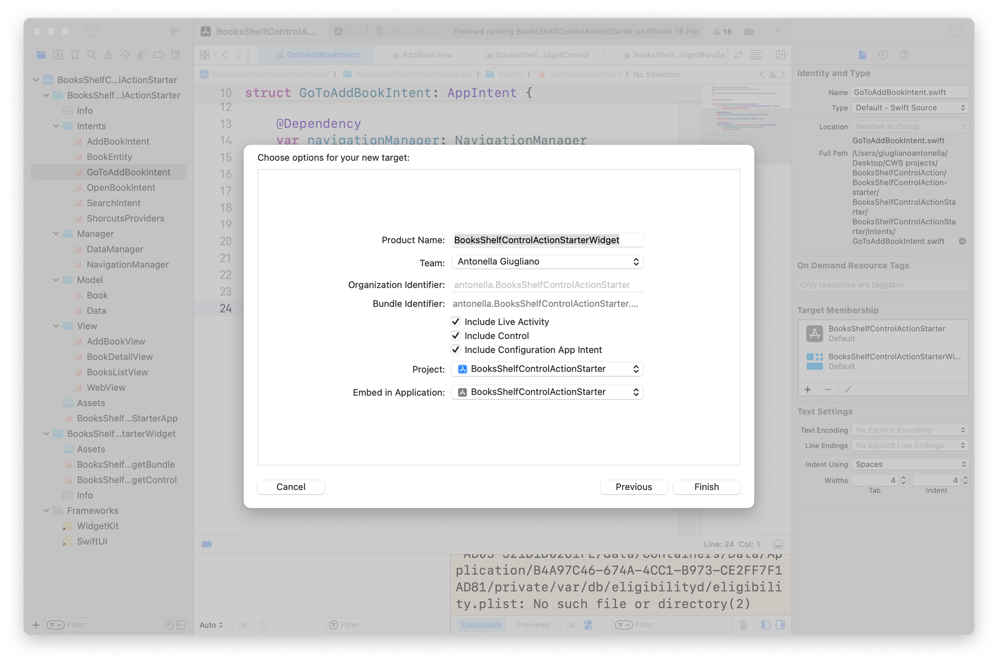 At this point, you should be prompted with an error saying “Cannot find 'GoToAddBookIntent' in scope”; to fix it, you need to: