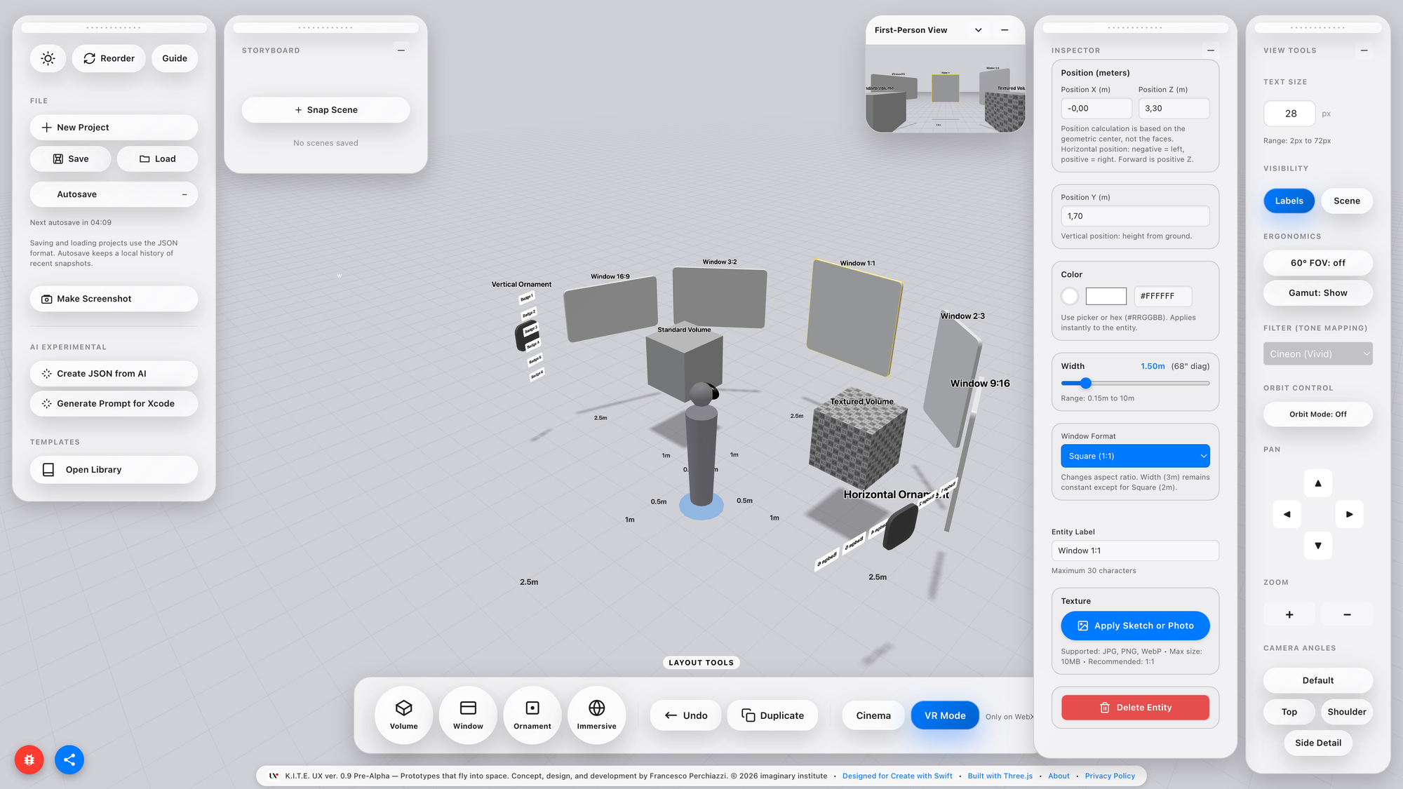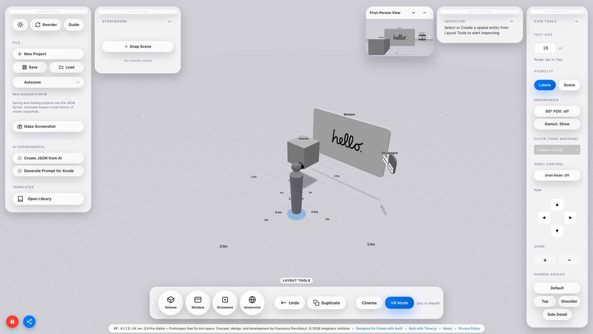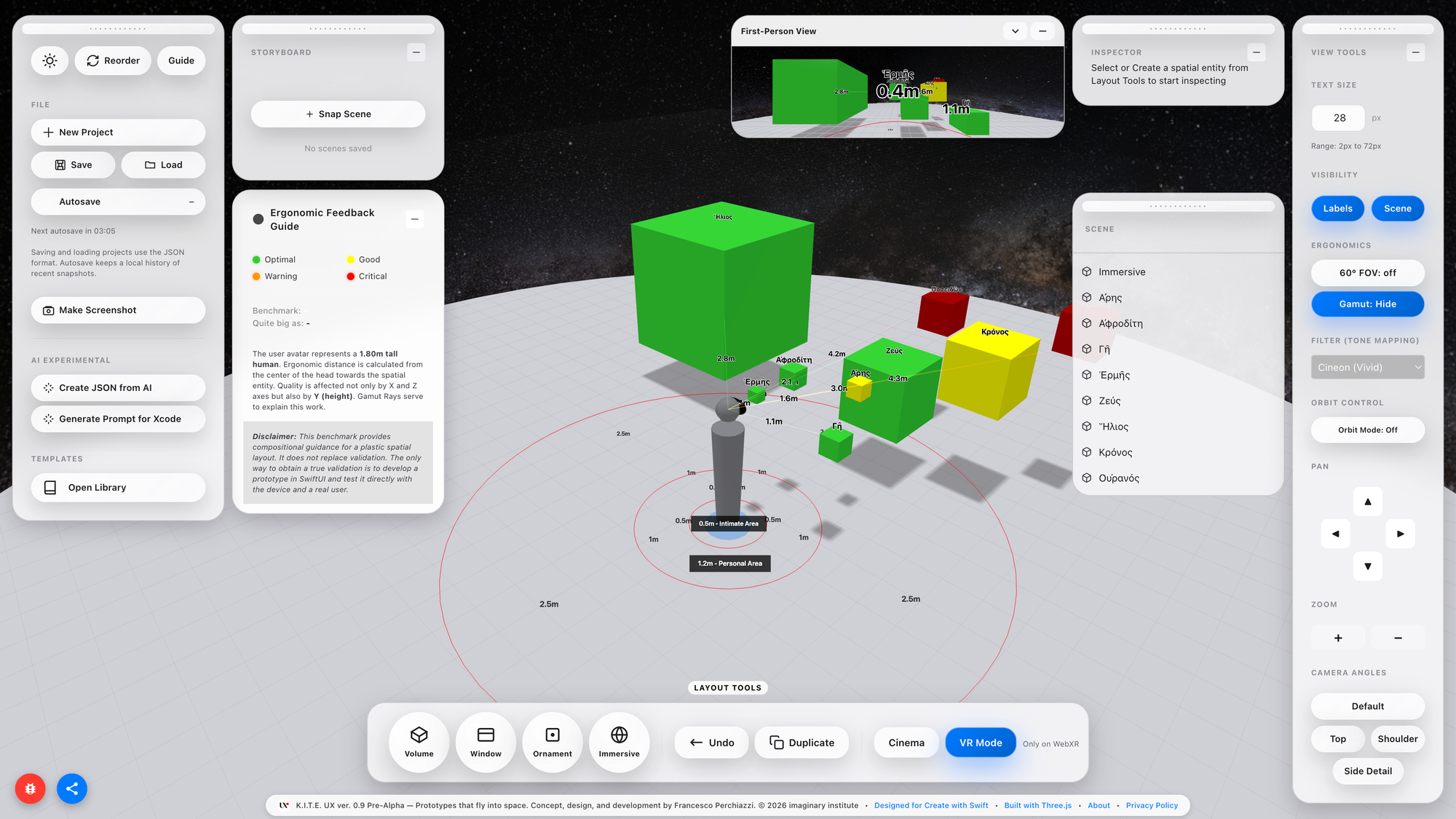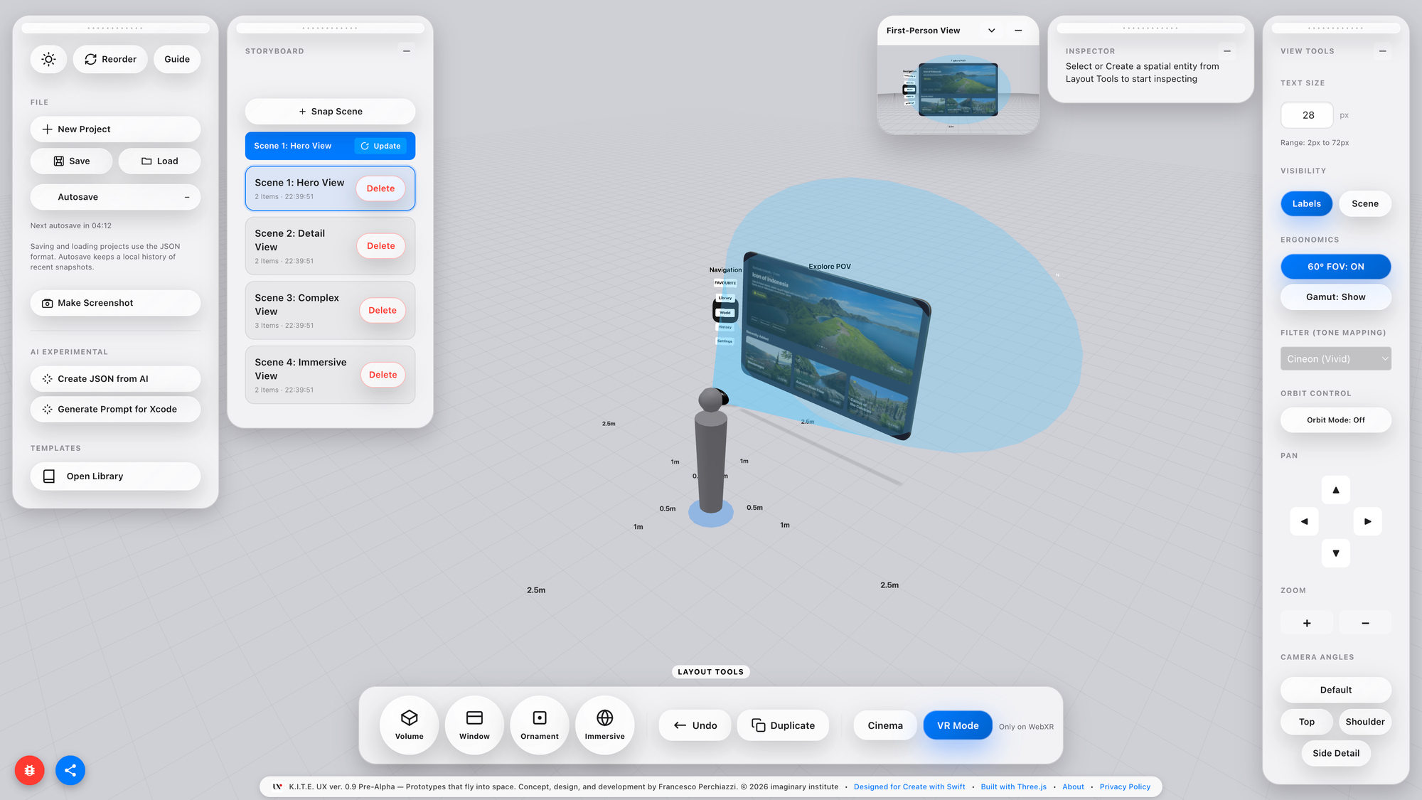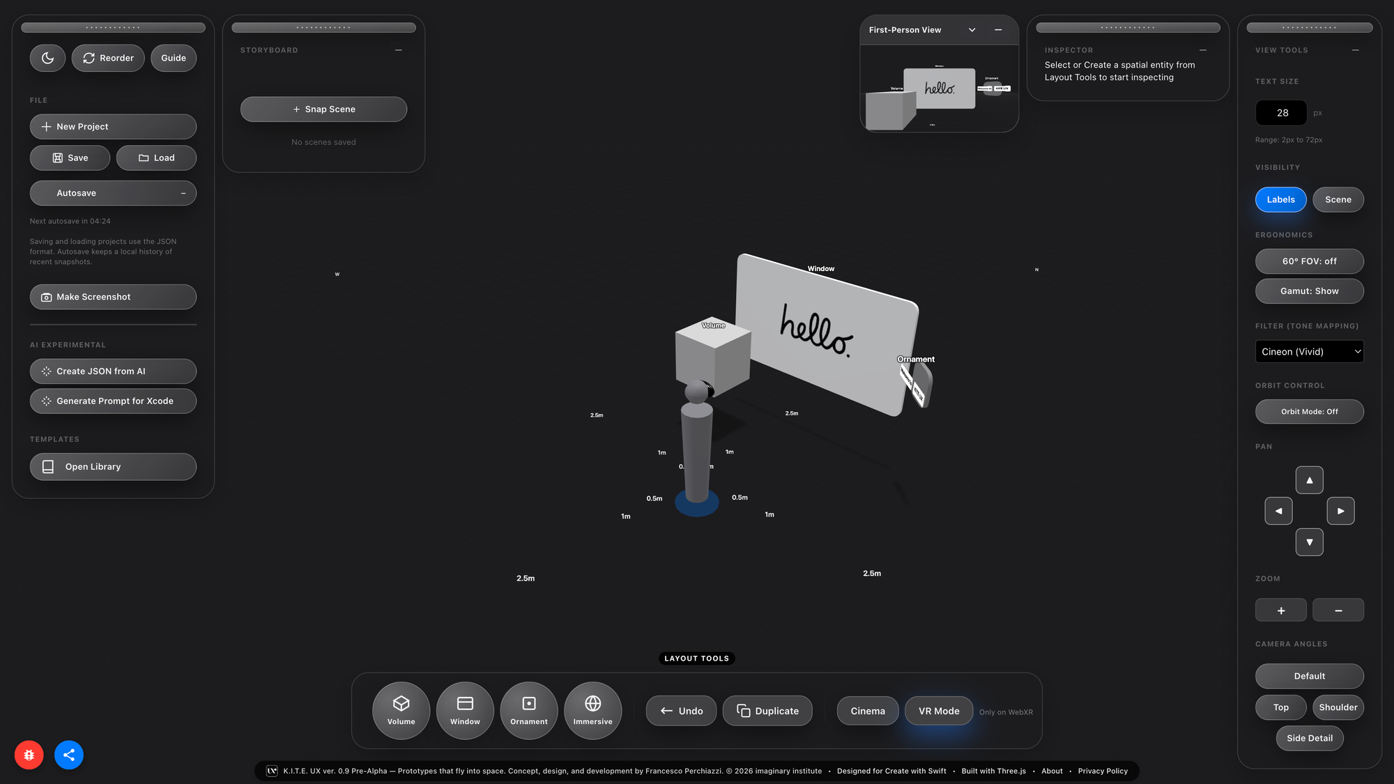 Designers benefit because K.I.T.E. UX provides a spatial version of Figma’s frame, not a canvas, but a proxemic canvas. A place where layouts, components, and semantically ordered structures can be authored before touching engine code. They gain abstraction power, the ability to think and experiment at scale without waiting for tooling.