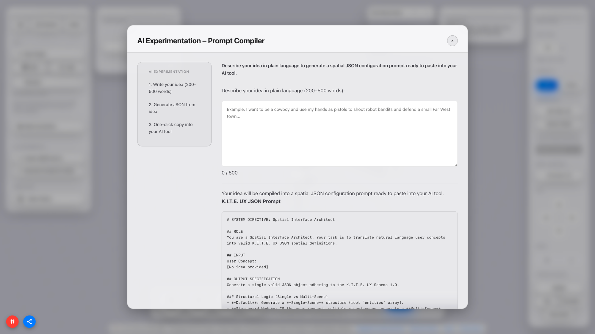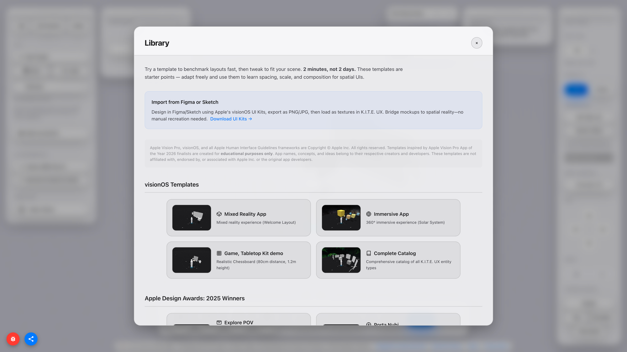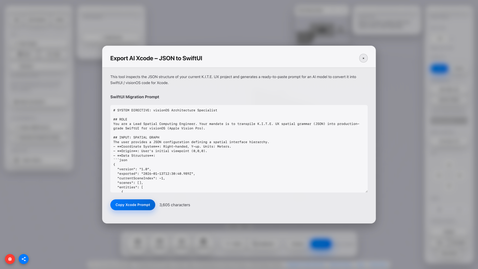 K.I.T.E. UX (Knowledge-Integrated Topological Editor for User Experience) is a web-based prototyping environment that bridges the gap between design ideation and technical implementation in spatial computing, with a particular focus on Apple Vision Pro.