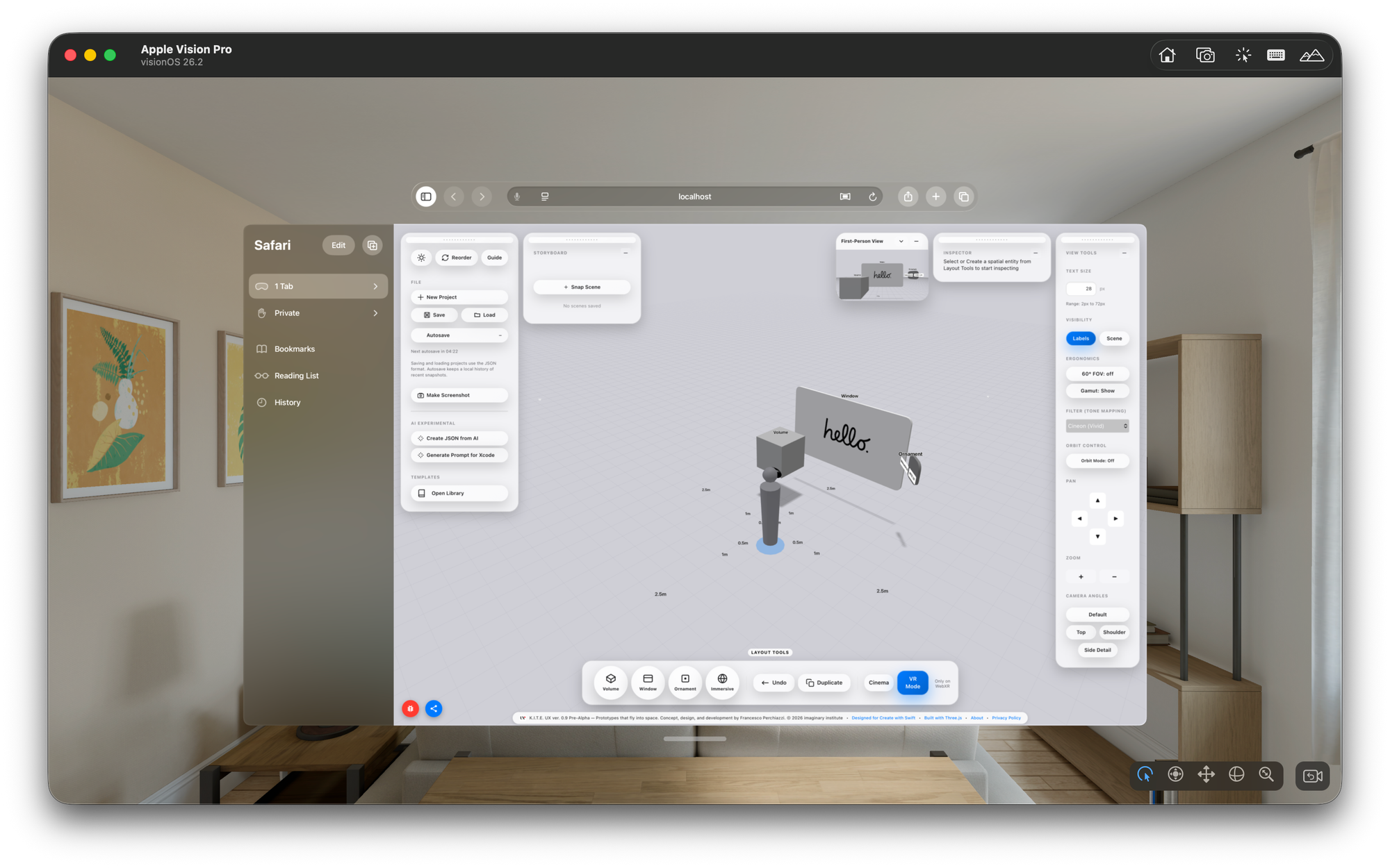 But ergonomics is not imagination. It is physics, psychology, neurology, and human factors playing out simultaneously. The kite intuition reframed the challenge: The problem was not spatial UI complexity. The problem was the lack of a cognitive wind tunnel, a space to test layouts before implementation, to check how digital objects live in the air, how they relate to the body, and how they belong to the perceptual field.