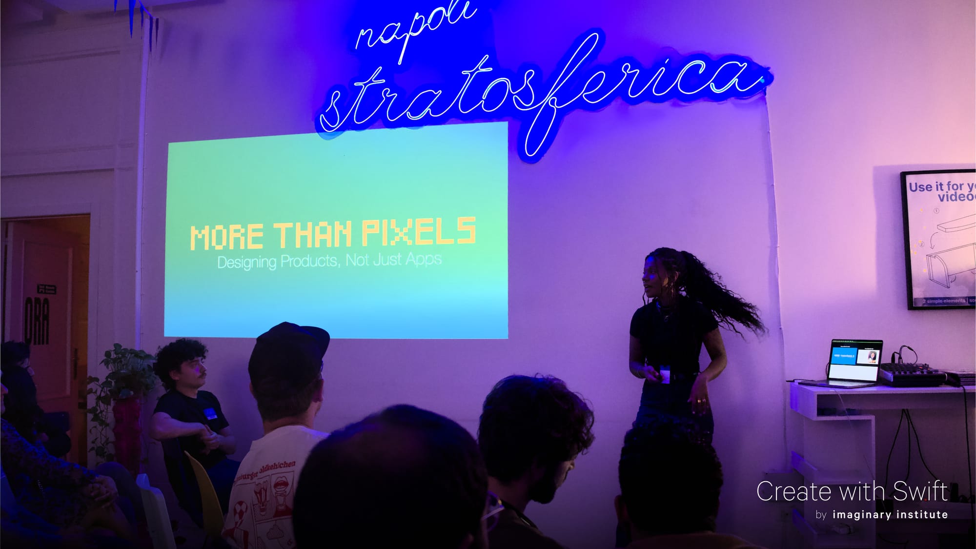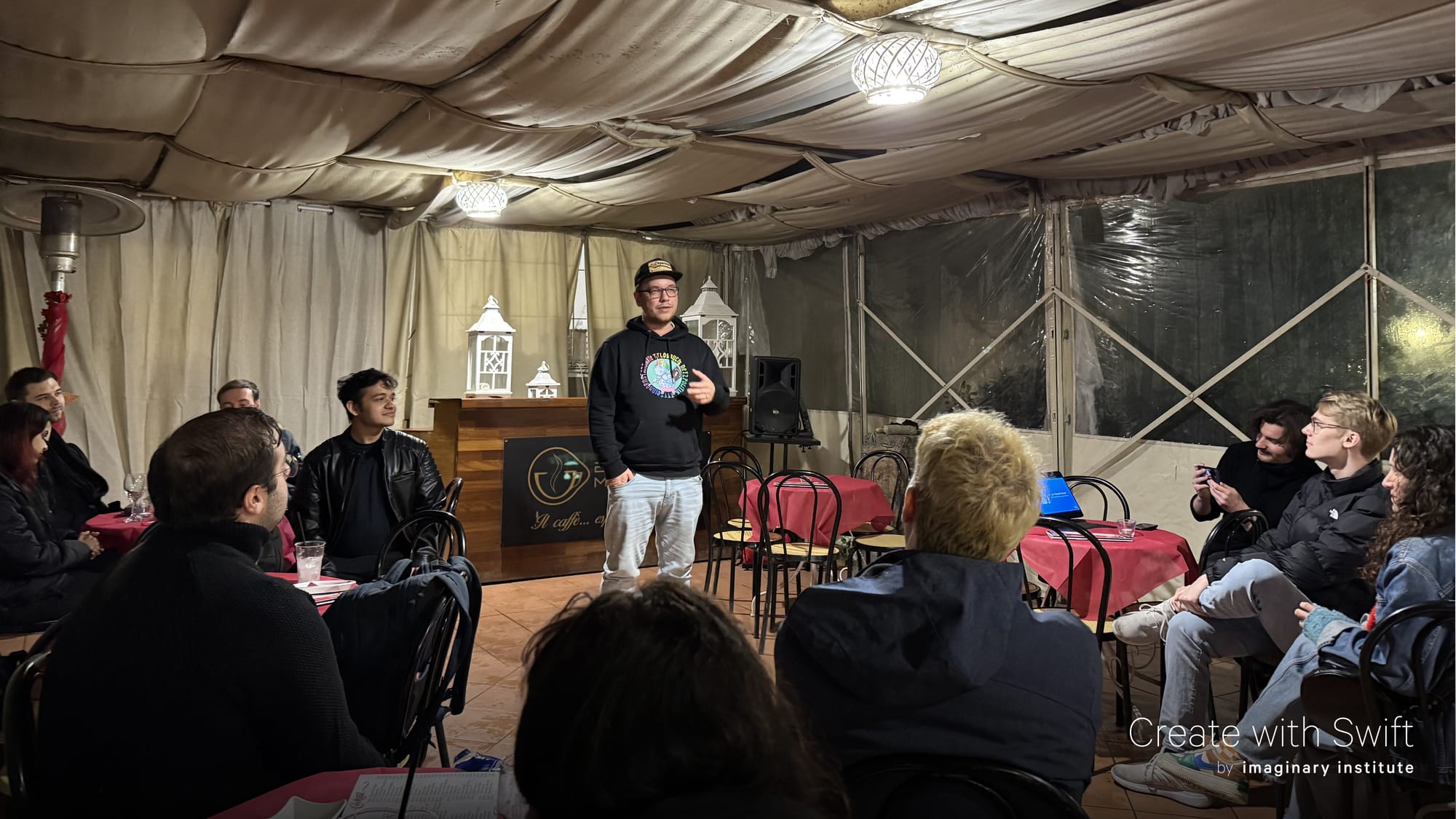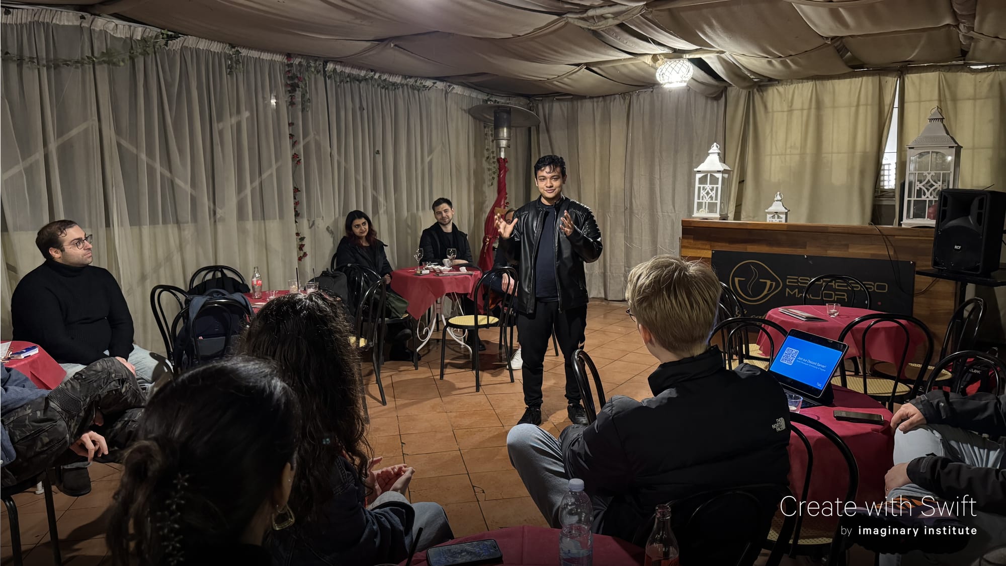 The second time we welcome speakers from the Apple developer community to the Create with Swift Napoli Meetup. Italo shared his take on accessibility, Stefano Perna and Antonella Giugliano introduced the concept of Creative Coding and the possibilities it opens for developers and designers searching for a way to express themselves with code, and Jan Armbrust talked about StoreKit 2 and the importance of trying to use native frameworks before going third-party when developing your applications.