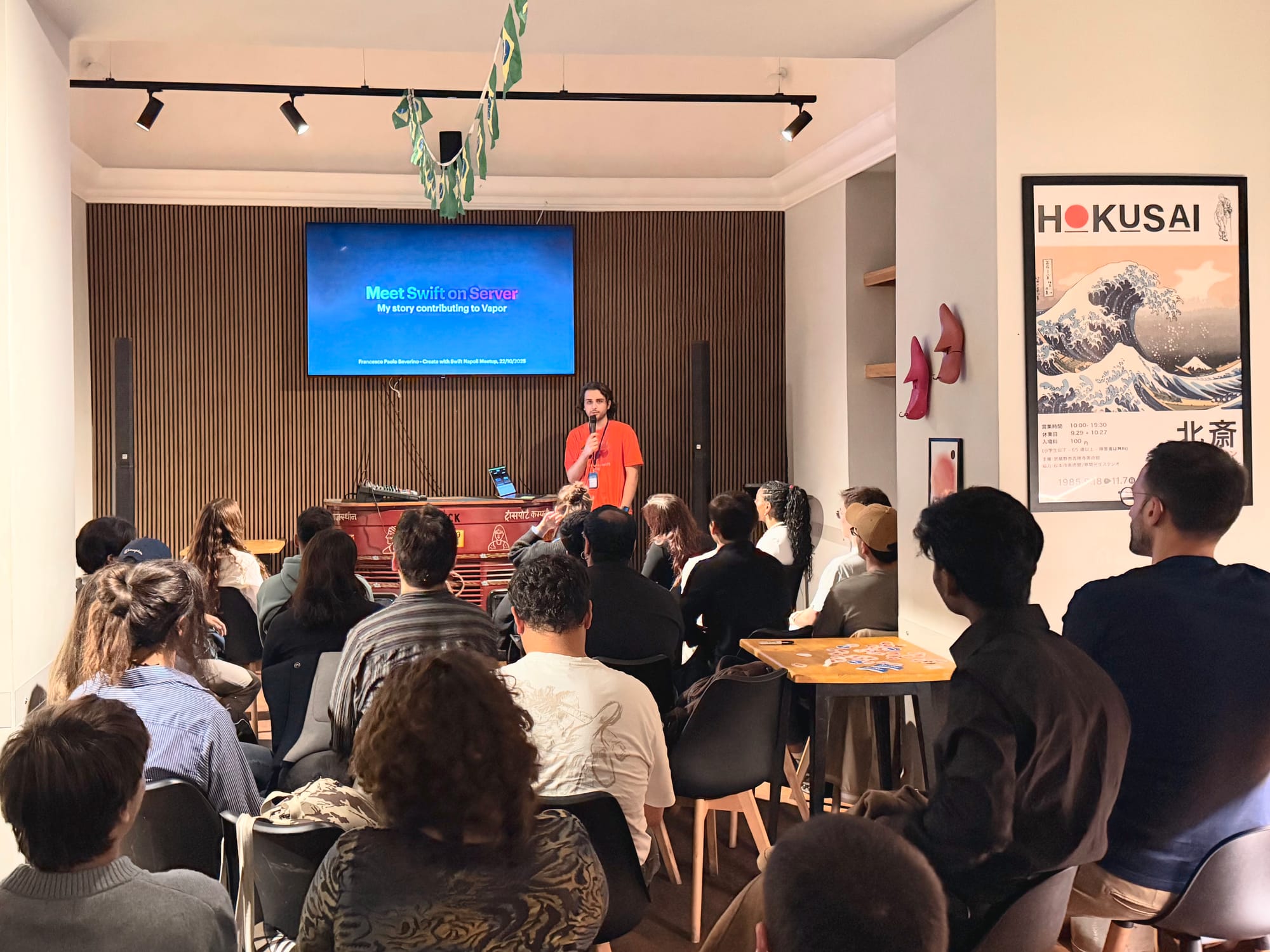 We are back from summer! To celebrate 1 year of Create with Swift events in Naples, we had the pleasure of hosting three speakers. Sofia Diniz came back to showcase the new SwiftUI Instruments in Xcode, Francesco Paolo Severino shared his journey becoming a contributor to server-side Swift open source projects, and Tiago Pereira went on the practical side of using Apple technologies to explore creative coding.