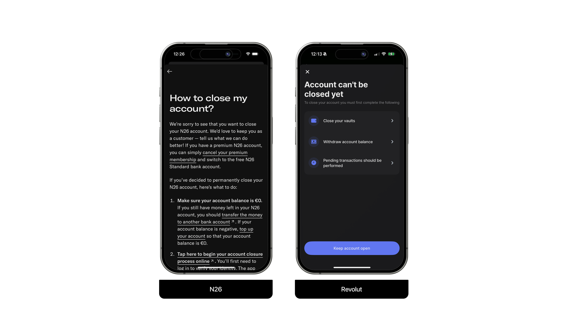 An example could be a banking account, where the user should remove the money before closing their account. To prevent scams, there shouldn't be any pending transactions to be concluded –since one could go shopping on the weekend, get the products, and close the account before Monday when the transactions would be processed.