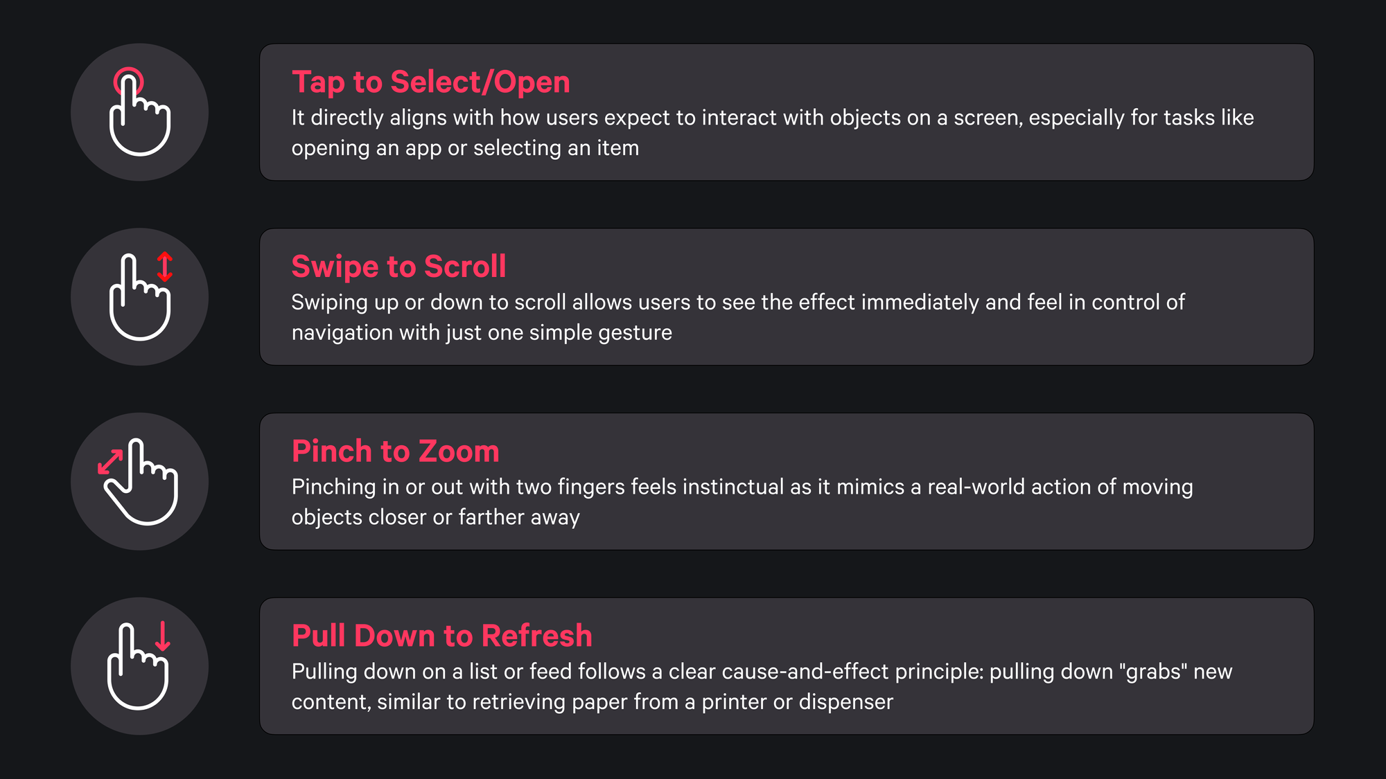 Gestures have a unique power in touch-based design, transforming digital interactions by enabling intuitive and fluid navigation. However, with this power comes the responsibility to design gestures thoughtfully, respecting system-reserved actions and accessibility needs. When gestures clash with core system functionalities or overlook inclusivity, they risk frustrating users and creating unnecessary barriers.