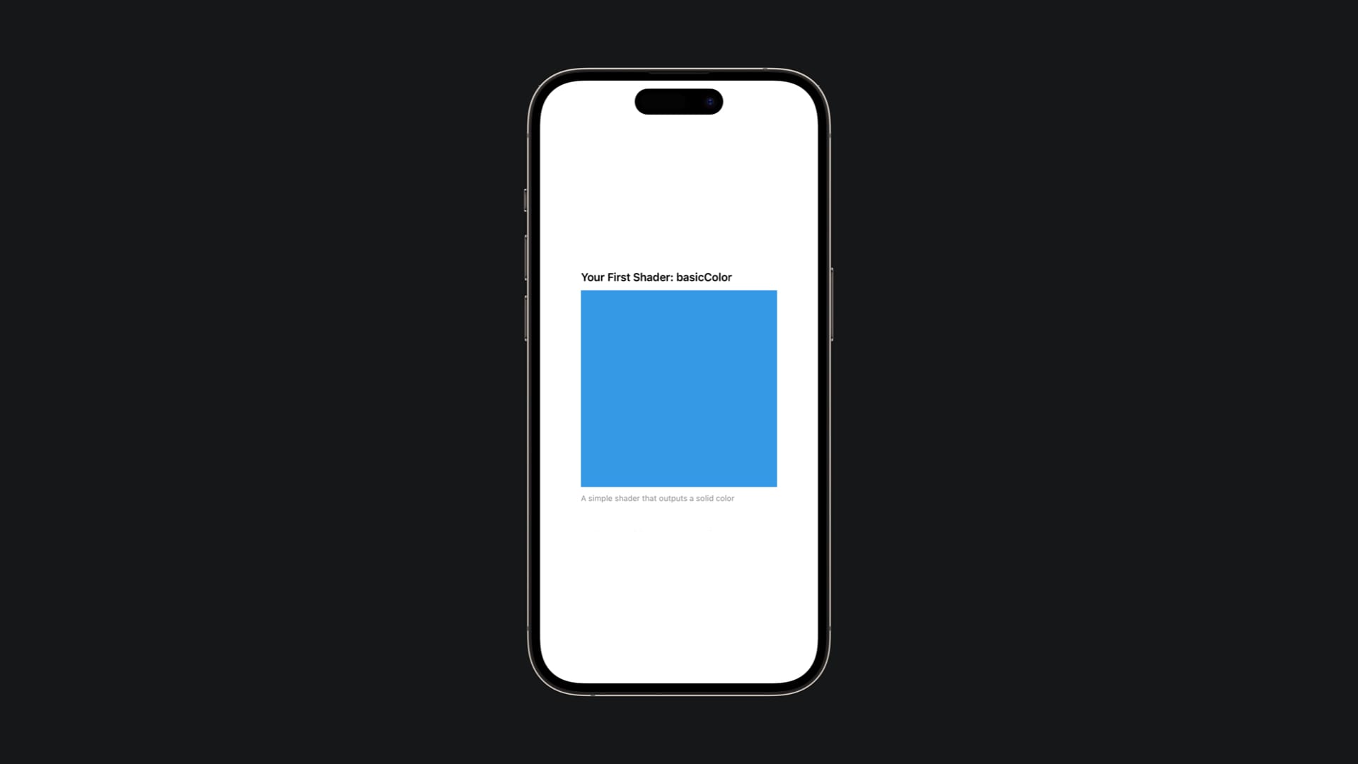 When this view renders, SwiftUI calls your basicColor shader function 90,000 times (once for each pixel), and each time it returns that same blue color. The result? A solid blue rectangle.