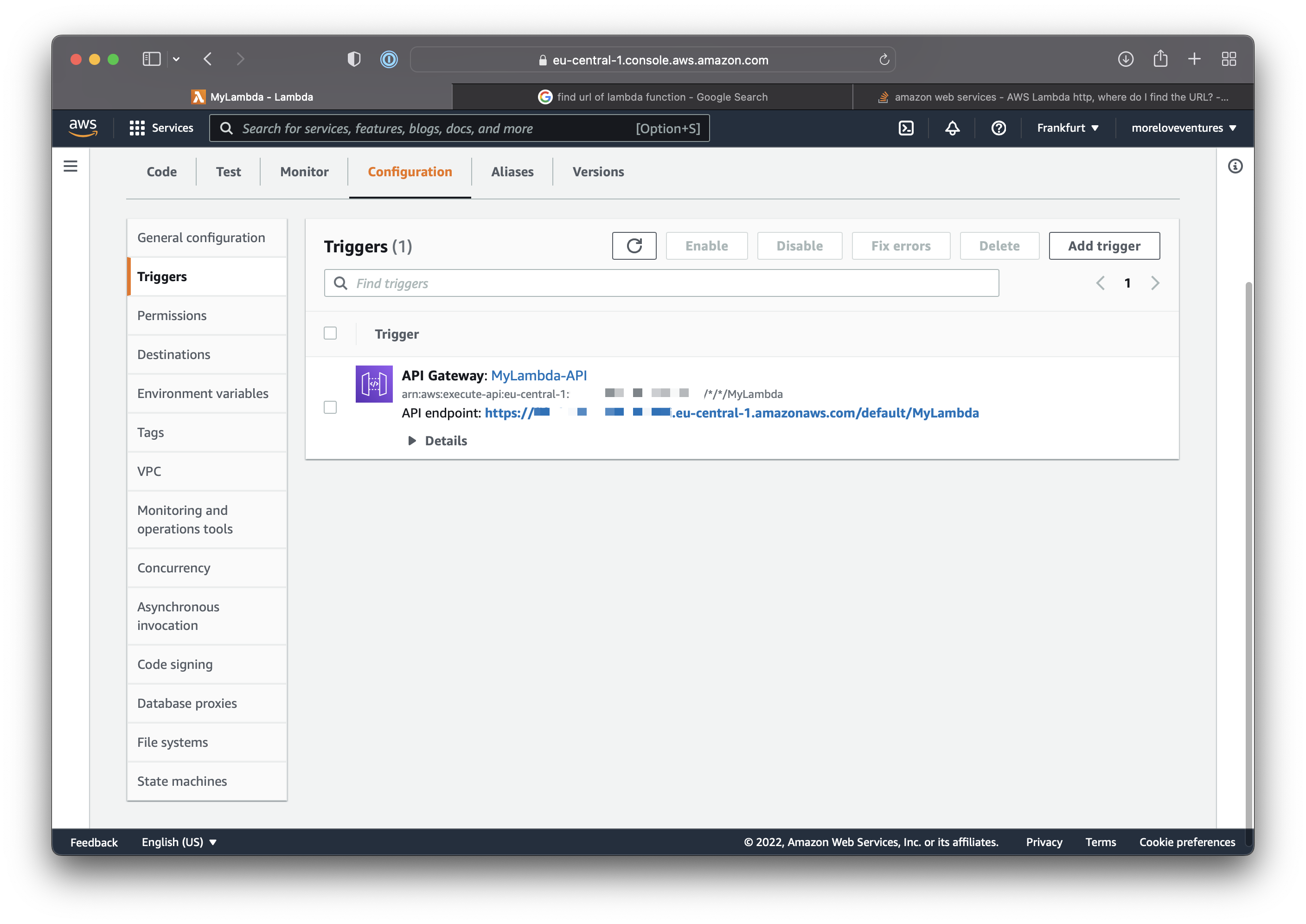 Once completed, you will be able to the API Gateway trigger for the Lambda function. The Lambda is now available at the API endpoint and works as intended.