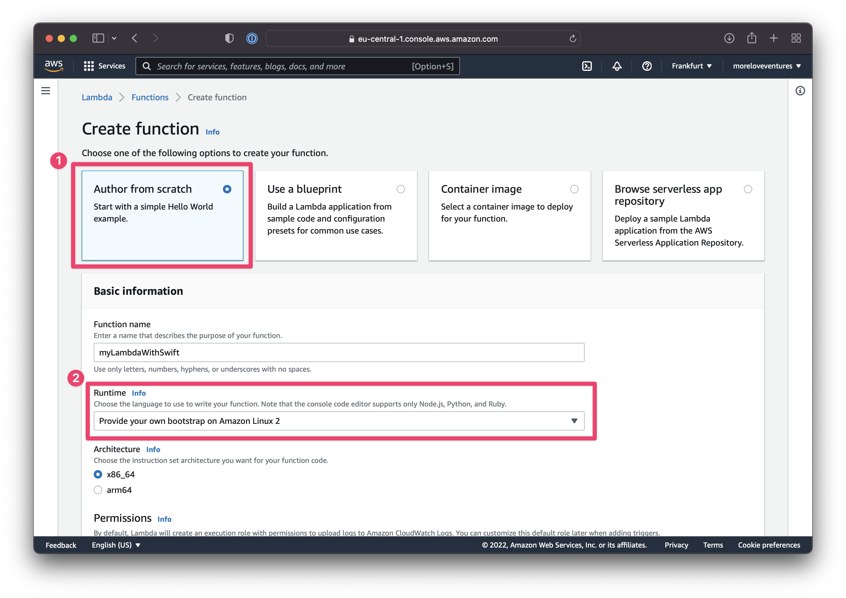 For a more elaborate explanation of how the Lambda function and closures work, check out "Getting started with Swift on AWS Lambda" by Fabian Fett or "Introducing Swift AWS Lambda Runtime".