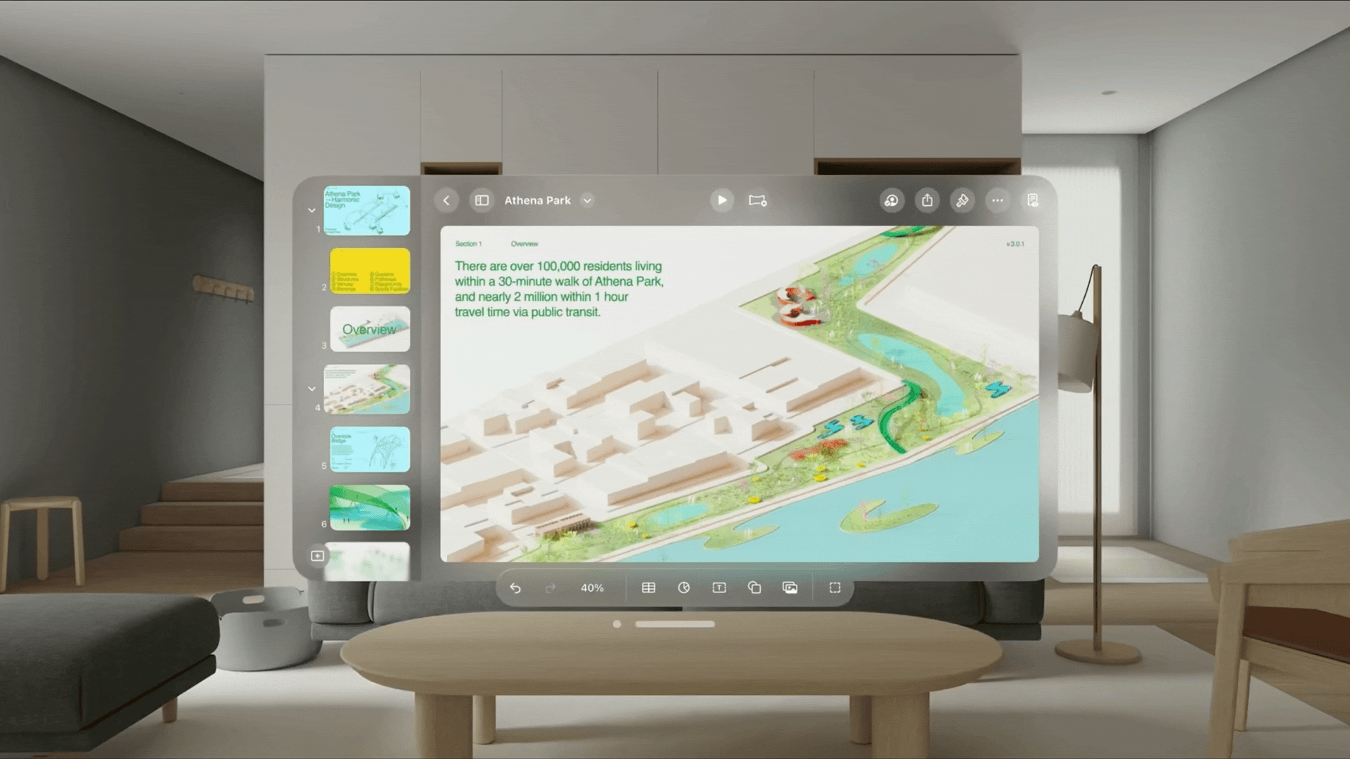 If you want a more immersive experience, Keynote can switch to Environment mode (still in Full Space), transforming the entire surroundings into a presentation stage.