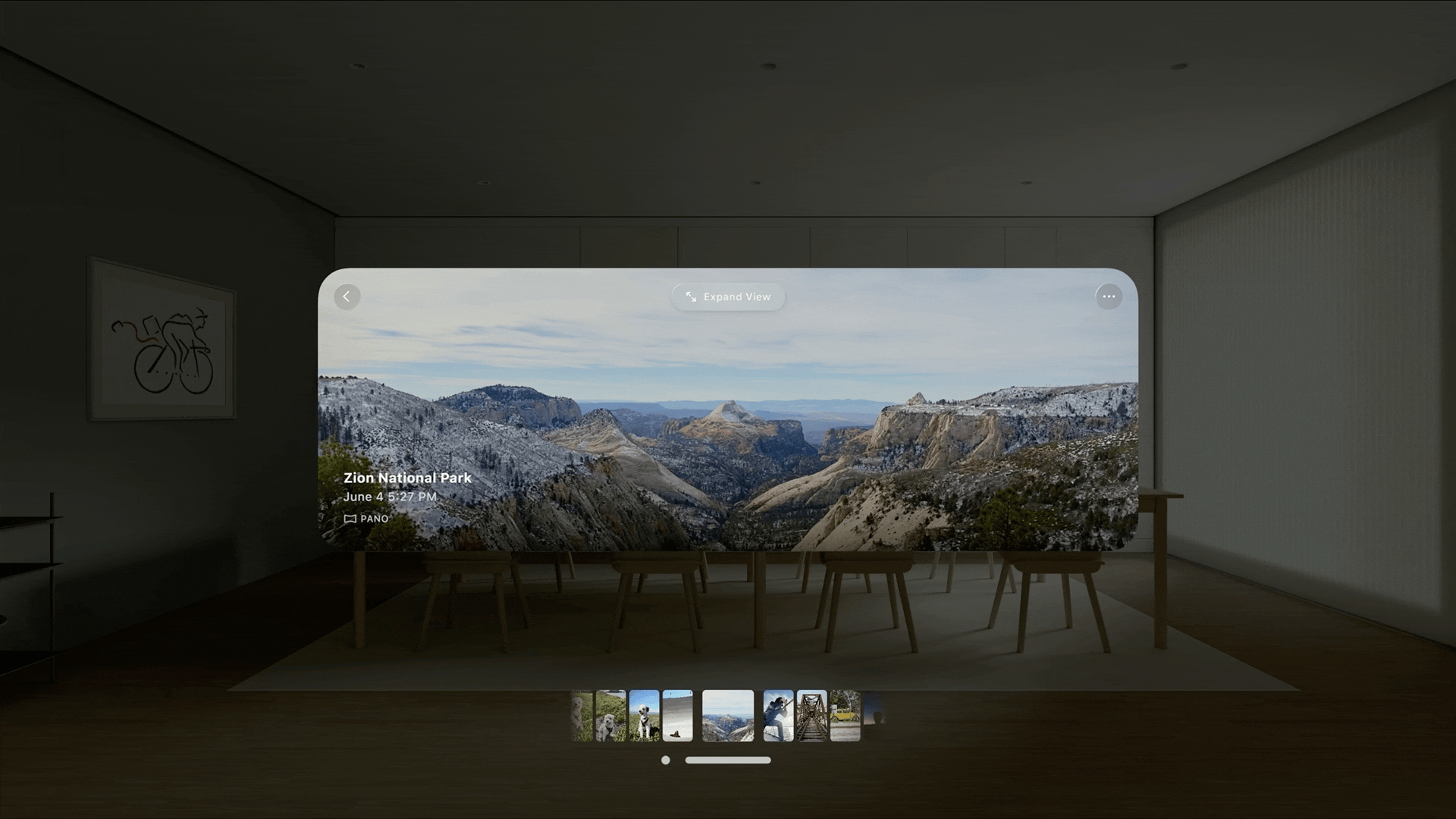 Similarly, within the Photos app, selecting a photo enlarges it in space while dimming the surroundings, providing a truly immersive viewing experience. When users want to explore a panorama, Photos seamlessly creates a Portal with a 180-degree view.