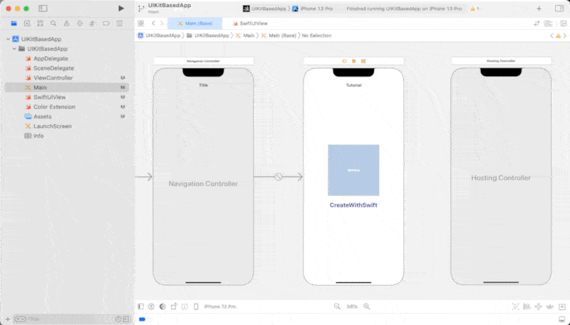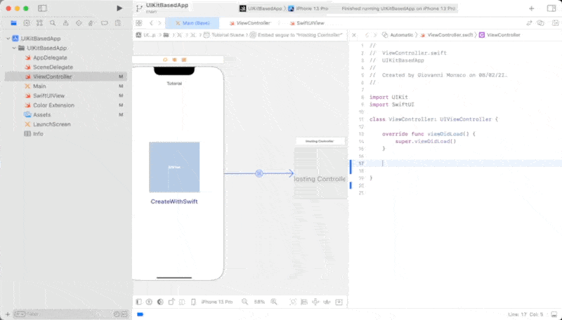 UIHostingControllerwill embed the SwiftUI View we are interested in. In other words, the hosting controller will use the SwiftUI View as a root view