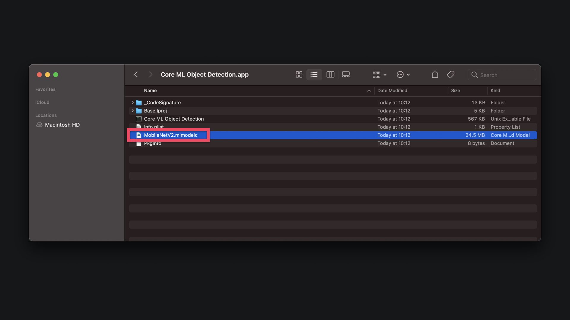 The .mlmodelc file can be added via drag and drop to the Playground's Resources folder. The tutorial is using the MobileNetV2 Core ML model. It can be downloaded from the Apple Core ML website.