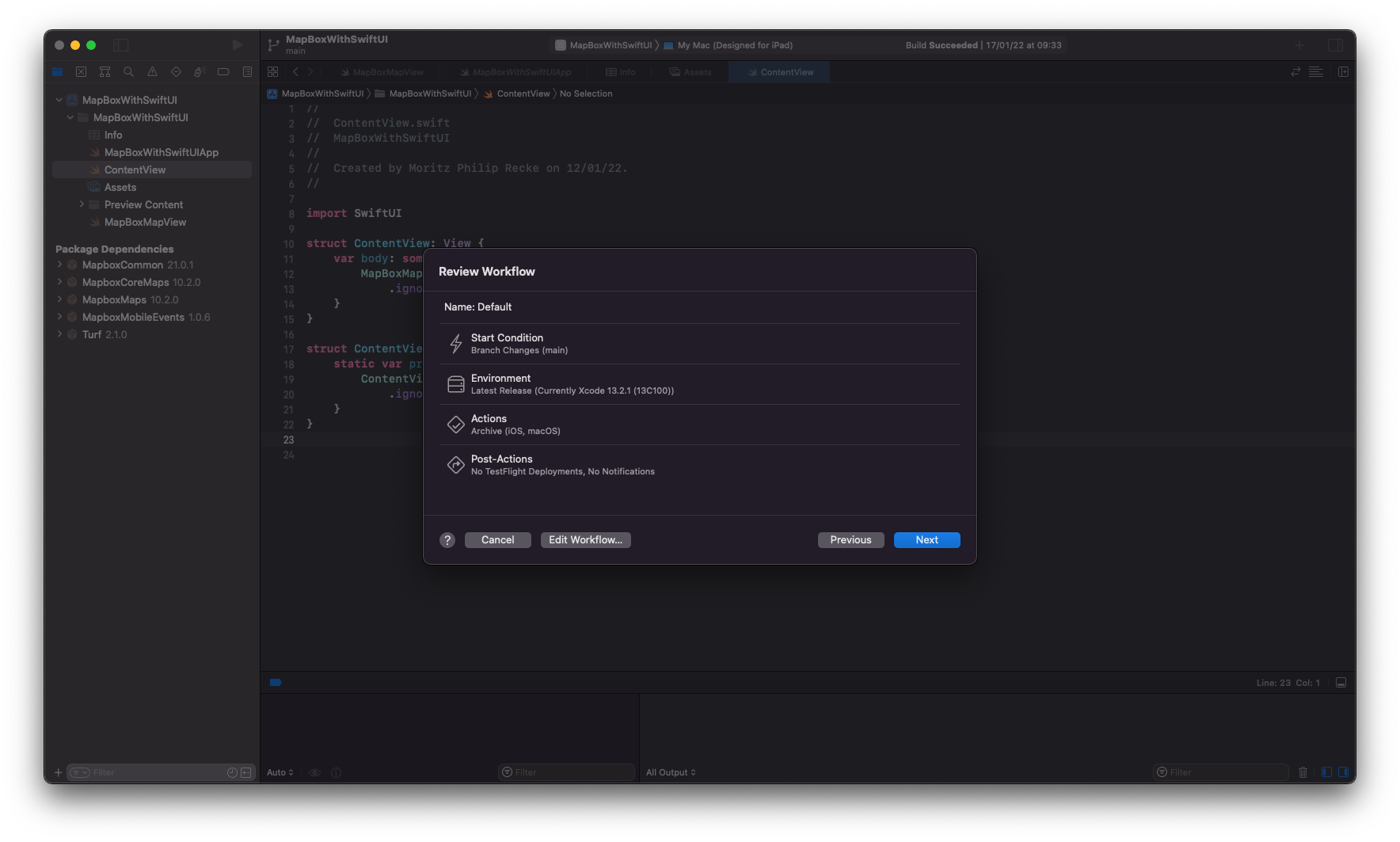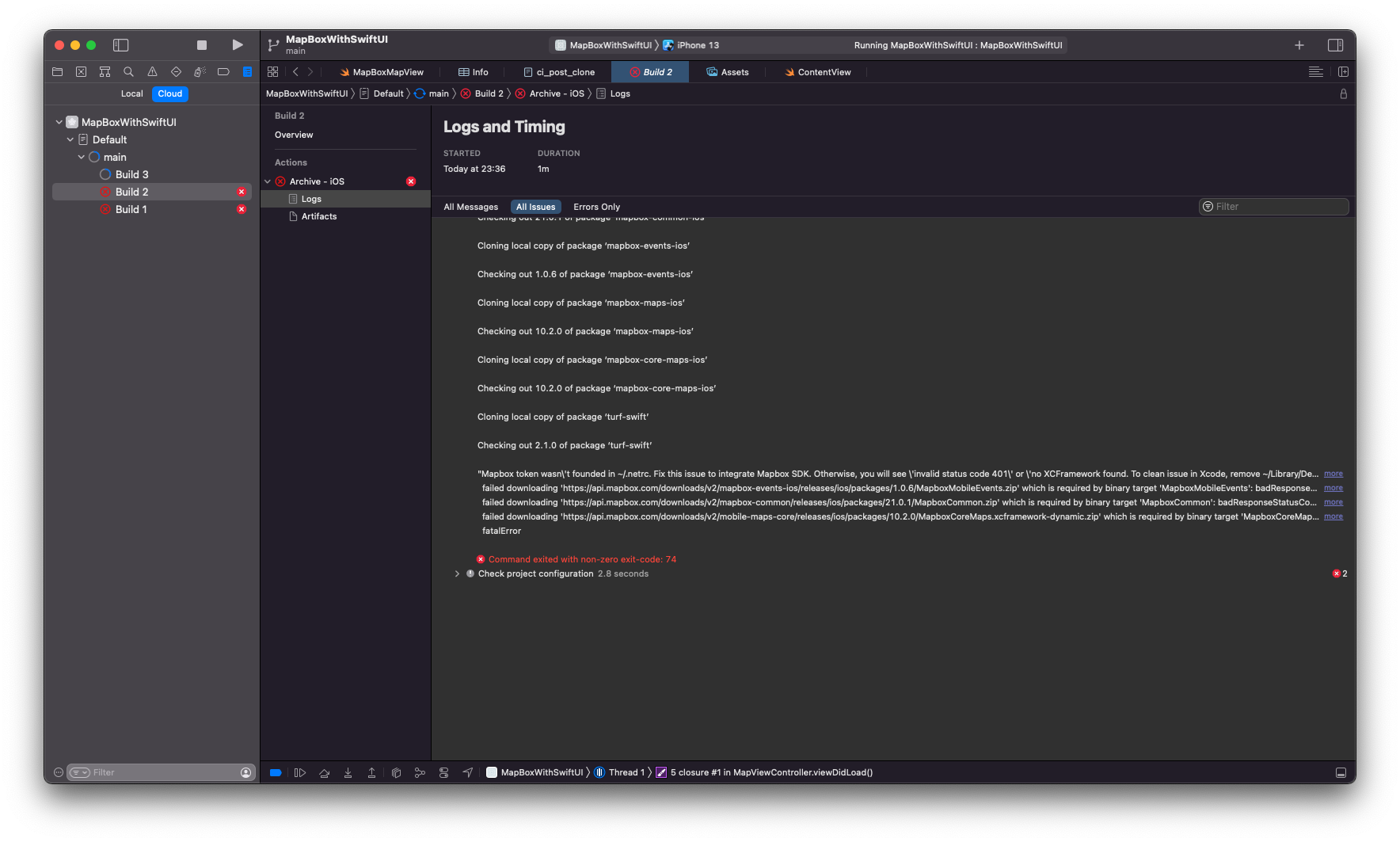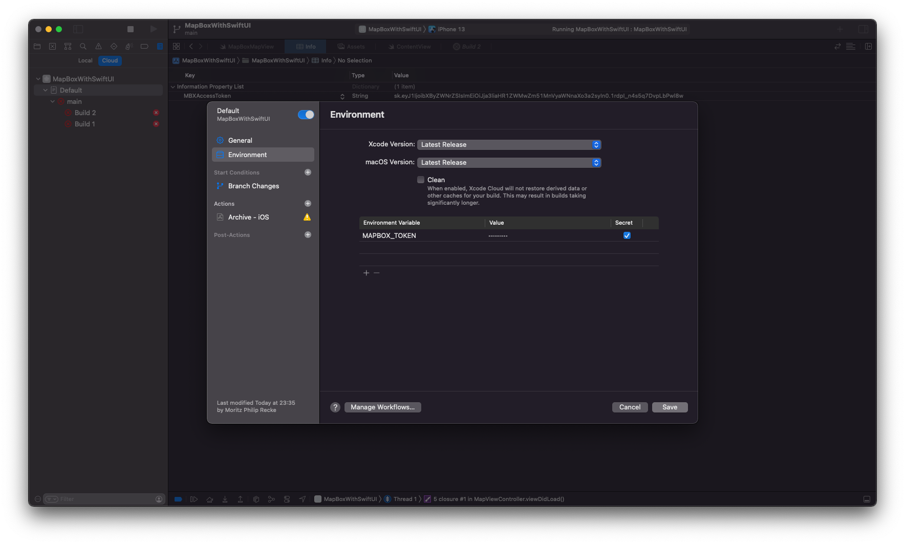Using the Mapbox SDK for iOS with Xcode Cloud