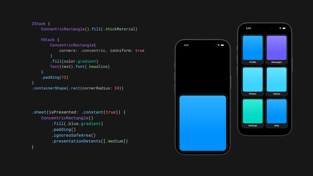 Natalia explores the new ConcentricRectangle API, showing how concentric corners are resolved from their container and highlighting important considerations when shapes are contained within sheets, popovers, or custom containers.