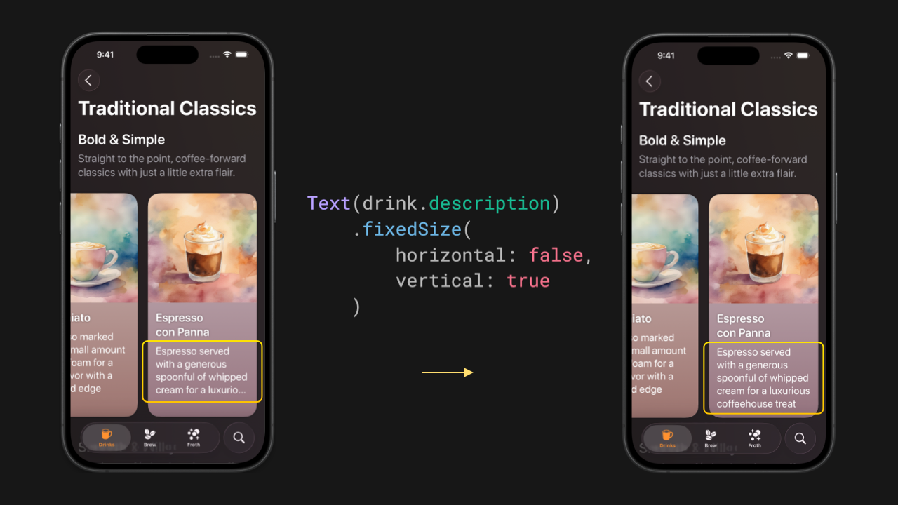 Natalia explains how to prevent unwanted text truncation in SwiftUI apps, especially at large Dynamic Type sizes by using the fixedSize